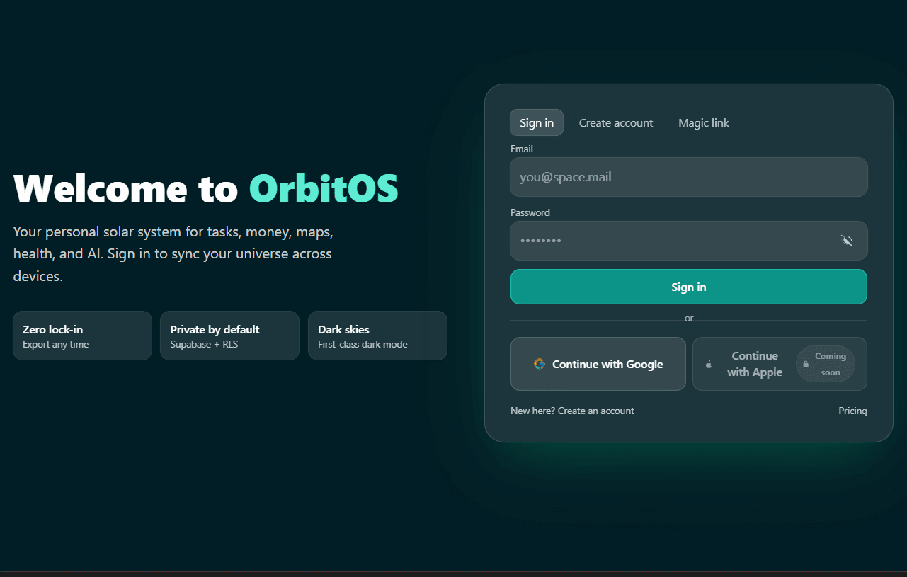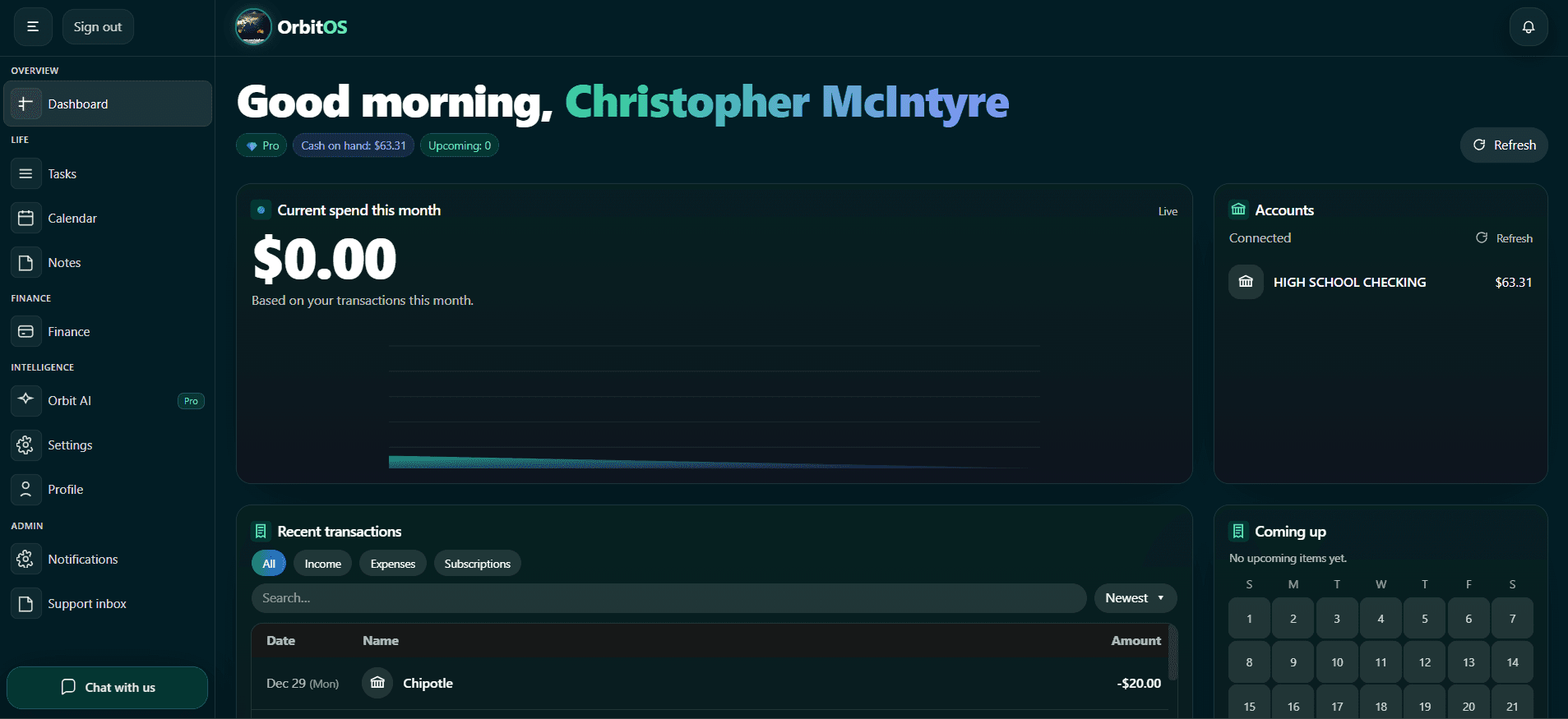 use OrbitOS to manage your time, track your money, and keep up with what matters most.